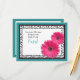 El texto de esta receta verde azulada, negra, blanca y rosa de la margarita gerbera "matrimonio exitoso" para que la novia sea completamente personalizable. Puede cambiarlo utilizando la opción de personalización. Para realizar cambios más extensos en la tarjeta postal, como cambiar el tipo de letra, el color de la fuente o el diseño de la fuente, elija la opción personalizar. Esta receta se puede incluir en la invitación a la ducha de novia para que los huéspedes de la ducha de novia puedan rellenar la parte de atrás con sus palabras de sabiduría para un matrimonio exitoso y llevar la tarjeta a la ducha como un boda para que la novia sea. También puede usar esto en una invitación de fiesta de cumpleaños cambiando el texto tanto en la invitación como en esta tarjeta. A continuación se muestra la invitación correspondiente.