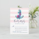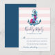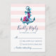 Complete su suite boda náutica con esta tarjeta RSVP, mostrando un ancla y flores sobre un fondo de rayas rosas.