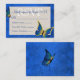 Tarjeta de gabinete rsvp azul y dorado con diseño de mariposa. Las ilustraciones azules coinciden con las etiquetas de la invitación a las mariposas y la dirección de retorno. Perfecto para quinceañeras y otras celebraciones de cumpleaños con colores de temática azul real o azul marino.