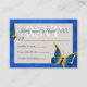 Consejos Tarjeta RSVP de Quinceañera azul, mariposa dorada