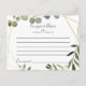 Este consejo tropical y deseos tarjeta de consejo boda es perfecto para un boda español moderno. El diseño está decorado con hermosas hojas verdes pintadas a mano, adornando un marco geométrico dorado. Estas tarjetas son perfectas para un boda, una ducha de novia, una ducha de bebé, una fiesta de graduación y más. Personalice las tarjetas con los nombres de la novia y el novio, los futuros padres o los graduados.
