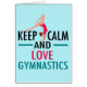 Graciosa tarjeta de cumpleaños Keep Calm and Love Gymnastics en un hermoso verde azulado. Un lindo humor de gimnasta presente para un entrenador de gimnasia o chica a quien le encanta caer en una leotard rosa bonito. Personalizar por dentro o váyase como Feliz cumpleaños a mi gimnasta favorita.