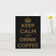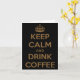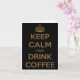 De la popular temática de "mantener la calma", esta carta proclama audazmente mantener la calma y beber café (diseñado en tonos café).