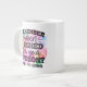 Jumbo Algunos días, una taza de jue de tamaño normal no sirve. Cuando necesites un toque extra de cafeína, saca esta taza gigante de café de Zazzle. Tiene capacidad suficiente para una medida Venti (20 onzas). ¡Y también la pudes usar para tomar sopa, cereales o incluso helado! Esta taza gigante cuenta con un asa en forma de "C" para mayor comodidad. Dimensiones: Altura: 4,5" Diámetro: 3,9" Capacidad: 20 onzas Caja fuerte de microondas y lavavajillas Construcción fuerte, cerámica Cumple o excede los requisitos de la FDA para el diseño de seguridad de alimentos y bebidas Consejo: Para garantizar la impresión de máxima calidad, tenga en cuenta que el área de diseño de personalizables de este producto mide 4" de alto x 10,5" de ancho