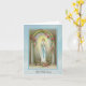 Una imagen tradicional hermosa del Virgen María bendecido con los rosas y el rosario santo con el texto "consiguen bien pronto". Todo el texto y fuentes pueden ser modificados.
