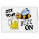 ¡Abeja linda que se lame en una taza espumosa helada de cerveza y que espera conseguir su zumbido encendido! ¡Y usted debe también!