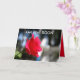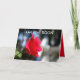 Una rosa roja se acercó con un fondo azul, blanco y verde. Eso está en una tarjeta GET BELL CARD. Eso es brillante y colorido para hacerte caer bien dentro.