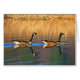 Un par de geeses canadienses están en movimiento. El ganso que sigue al líder parece tener algo que decir.