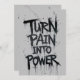 Convierte el dolor en poder. Transformar tu sufrimiento en fuerza. Palabras humanas expresivas en el marco gráfico de salpicaduras.