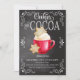 Invitación a Cookies & Cocoa - Invitación a Chocolate caliente - Esta invitación incluye un fondo de pizarra con una taza de coco y galletas color agua. El reverso de la invitación incluye copos de nieve en un fondo de pizarra. Personaliza tu propio texto/detalles! Para una mayor personalización, haga clic en el botón "Personalizar it" y utilice las herramientas de diseño para modificar esta plantilla. No se pueden modificar todas las ilustraciones y el texto.
