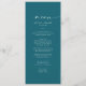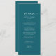 Esta moderna acuarela coordina la carta verde azulada para la cena boda, perfecta para un boda contemporáneo y elegante. El sencillo diseño azul, verde y blanco, presenta una tipografía industrial única con un estilo boho moderno. Personalizable de cualquier color. Mantenga el diseño minimalista y elegante, tal como está, o lo personalice añadiendo sus propios gráficos y obras de arte. Este menú se puede utilizar para la recepción de bodas, la cena de ensayo o cualquier evento.