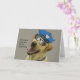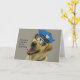 Cop de laboratorio amarillo con tarjeta de cumplea