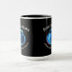 Esta taza combinada es genial para cualquier amante del café. Presenta mi fotografía de cierre alterada digitalmente de una taza y platillo azul con granos de café sobre un fondo negro. El texto en blanco abovedado encima de la fotografía dice "Miembro oficial del equipo". El texto blanco inclinado debajo de la fotografía de la taza y el platillo dice "Escuadrón de Consumo de Café". Rellene los campos de plantilla para cambiar el texto en ambos lados o haga clic en personalizar para seleccionar un estilo de tipo de letra, tamaño y color que desee.