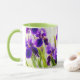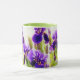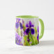 Esta taza de bonito floral muestra mi fotografía original de flores de iris morado en un jardín, procesada con una técnica de acuarela para un estilo ilustrado, pintoresco con un toque de brillo. Tiene un color verde en su interior y en el asa, que puede cambiarse si lo desea. Estos son tazas de 11 onzas, el tamaño perfecto para tu café o té hecho en casa - o incluso chocolate caliente! Sería un gran regalo y se pueden poner paquetes de café, bolsos de té o chocolate caliente dentro. Otra idea de regalo es poner una pequeña planta en ella para hacerlo extra especial para tu ser querido.