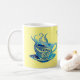Copa de café azul artístico con patrones de nataci