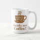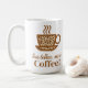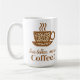 La taza de café estilizada se llena con un rico patrón de frijol de café y está coronada con vapor ascendente. Debajo, la frase "¡menos café, más café!" agrega un toque humorístico y relativo perfecto para los amantes del café.