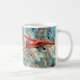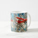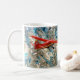 Café en avión rojo brillante o taza de té. Para el piloto y los entusiastas de los vuelos. El paisaje está sobre Alaska.