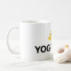 Disfruta de una taza de café en esta taza de café de esta madre de yoga. Incluye una flor de loto amarillo y un tipo de letra negrita y en mayúsculas.