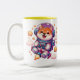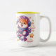 Copa de camping blanco. Plantilla de simulación de taza realista con diseño de muestra. Campo de verano. Vector. Diseño de tipografía de época con muñeca linda