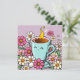 taza azul de café caliente sentado en un lote de lindos pegatinas personalizados rosados y amarillos de flores.