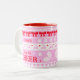 Este diseño festivo y ondulante incluye las palabras 'La Copa de Cheer de Tu Nombre' dentro de un diseño de suéter Navidad que tiene una paleta de colores rosa, rojo y blanco y que incluye arcos, renos, copos de nieve y bayas y helito. Se puede personalizar todo el texto. Vea toda la colección coincidente. Todas las obras de arte están ilustradas a mano por Kaitlyn Thomas y están protegidas por los derechos de autor.