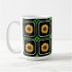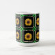 Esta taza de bonito presenta un patrón vintage de cuadrados procesados y creados digitalmente por mí en un patrón retro de cuadrados angustiados con girasoles ilustrados en cada cuadrado.