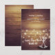 Plantillas de Tarjetas de Asiento de Boda / Número de Mesa / Acompañante Dobleces - Letra Elegante, Copas de Champagne Vintage y Luces de Cadena sobre Fondo de Madera Rústica.