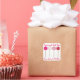 Los pegatinas presentan un ilustracion original de marca de una hilera de copas de pasteles escarchados rosados. Simplemente personaliza con el nombre del panadero para disfrutar de un delicioso regalo casero.