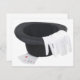 Trucos mágicos mostrados por un sombrero superior con guantes y cartas blancos