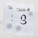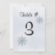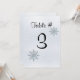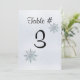 Elegante tarjeta plana de número de mesa realizada en un fondo de hielo de cristal plateado, con preciosos copos de nieve con brillo plateado y azul claro. El texto negro, en la parte superior, dice Table #, con un gran número negro debajo. Personalice el número para cada mesa en la recepción de su boda. Personalice para agregar texto adicional a sus tarjetas. El texto cambiará automáticamente en la parte posterior de la tarjeta cuando personalice el texto en el frente. Productos coincidentes disponibles.