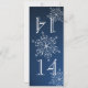 Diseño de copo de nieve azul número de mesa DIY. Cambie el número para cada mesa y ordene individualmente para que los números de mesa coincidan con las invitaciones. Doble por la mitad para hacer una tarjeta de número de mesa de 4" x 4 5/8".