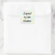 Una etiqueta pegatina para indicar un libro, revista, artículo, foto, etc., tiene el autógrafo/firma del autor/ilustrador/ artista/ fotógrafo.