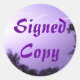 Una etiqueta pegatina para indicar un libro, revista, artículo, foto, etc., tiene un autógrafo de autor/ilustrador/artista/fotógrafo adjunto.