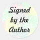 Una etiqueta pegatina para indicar un libro, revista, artículo, foto, etc., tiene el autógrafo/firma del autor/ilustrador/ artista/ fotógrafo.