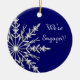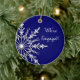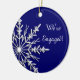¡Él propuso y usted aceptó y dijo SÍ! ¡Le ahora contratan estar casado! Conmemore su día del compromiso con el copo de nieve elegante en el ornamento redondo del compromiso azul. Modifiqúelo para requisitos particulares con los nombres personales de la novia y del novio para ser y de la fecha del compromiso del invierno. No dude en para cambiar el texto o la fuente para adaptarse a sus necesidades. Un compromiso con clase en el ornamento azul del círculo hace una embutidora, un fiesta de compromiso o un regalo de almacenamiento personalizado único de la ducha. Este ornamento de encargo del compromiso del bonito ofrece un copo de nieve complejo del tono plateado en un fondo azul.