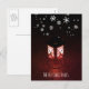 Tarjeta postal de Navidad de copos de nieve de linterna de vela. Luz de linterna vintage clásica con una vela y hermosos copos de nieve blancos. Desea a sus amigos y familiares felices fiestas.