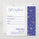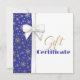 Lujoso y rico diseño de vacaciones con espléndidos Navidades regalo arco y dorados copos de nieve en un fondo azul. Este certificado de regalo es perfecto para su pequeña empresa o para regalar a amigos y familiares.