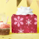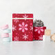 Copos de nieve en el papel de embalaje rojo del navidad del fondo.