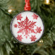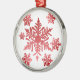 Copos de nieve en ornamento rojo
