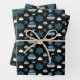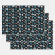 Hojas de papel envueltas con un copo de nieve y un patrón de roca curvada en azul, blanco y gris sobre fondo negro. Perfecto para curadores y abanicos.