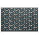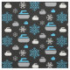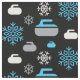 Tejido con un copo de nieve y un patrón de roca curvada en azul, gris y blanco sobre fondo negro. Perfecto para curadores y abanicos.