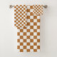 A brown and white checkerboard pattern fills the image. The square tiles are evenly spaced, creating a uniform and orderly geometric design.