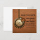 Este exclusivo reloj de vintage Save the Date Announement en naranja oscuro presenta relojes de veta de vapor antiguos y engranajes colgados por una metalizado cadena de peras. El fondo tiene un papel texturado y un overlay de malla que le da un aire angustiado y soso al diseño. Esta extravagante y poco convencional ahorra la invitación a la fecha sería perfecta para anunciar a su boda inspirado en steampunk. Fácil de personalizar, simplemente añada los detalles de su boda. Haga clic en el botón "Personalizar" para encontrar opciones de personalización adicionales.