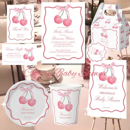Cherry baby shower invitations party suppliesDiseñado por Ieva Jenciute