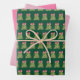 Coqueta verde y rosa dobla hojas de papel de envolvimiento de árbol de Navidad de 3