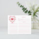 El elegante escudo en monograma de cerezo le da a estas tarjetas de la receta de la ducha de novia un aspecto hermoso e intemporal que cualquier futura novia adorará. Personalice este diseño con su primer escudo. Los colores son rosa y rojo.