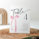 Coquette Pink Bow Bridal Table Número de tarjetas