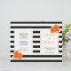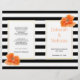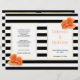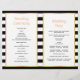 Espectáculos coralinos sobresalientes y bodas con rayas blancas y negras doblados y programa fiesta. Las hermosas flores de amapola adornan esta elegante moda y el moderno diseño boda. El texto se coloca sobre marcos blancos con contornos dorados. Elige el papel de valor a medida que se dobla bien y tendrás que doblarlo a la mitad.