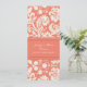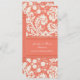 Tarjetas de invitación matrimonial en elegante naranja de melocotón y color crema de damasco floral clásico blanco, personalizable completo con sus nombres y detalles bodas, la manera perfecta de anunciar su boda a amigos y familia. Disponible en una amplia gama de productos bodas a juego.