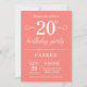Coral de invitaciones de cumpleaños número 20
